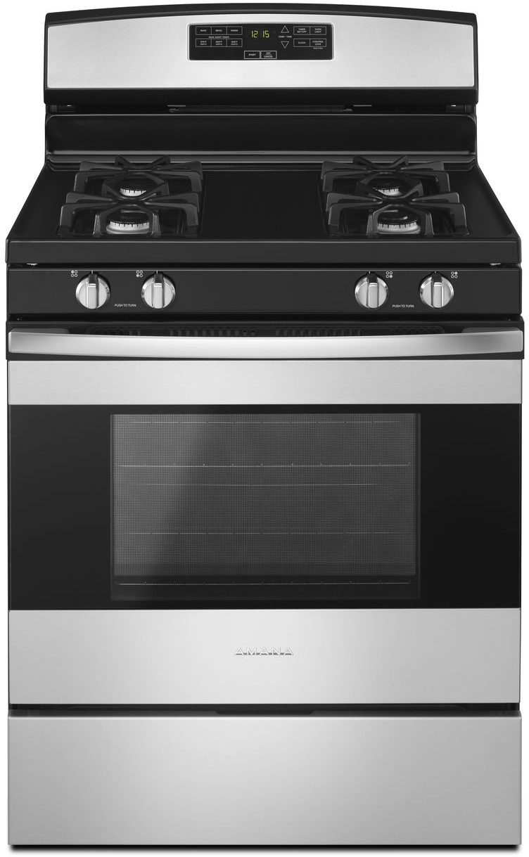 Amana® 30" Free Standing Gas Range-Stainless Steel with 5.0 cu. ft. capacity, extra large oven window and bake assist tempsRead More